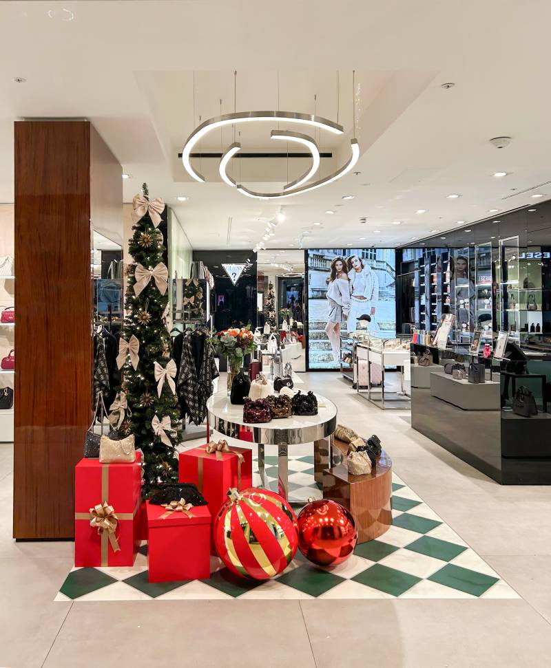 Dalle luci calde del camino ai pacchi scintillanti sotto l’albero, la magia del Natale prende vita nella nuova vetrina festiva di Guess. Un gioco di volumi tra palline giganti e dettagli luminosi, dove l’incanto delle feste diventa pura ispirazione di stile.